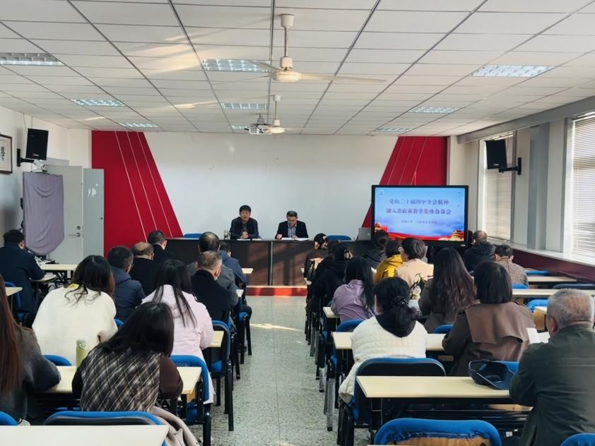 党委书记刘颖超主持会议,院长杨立志对党的二十届四中全会公报进行系统解读,全体思政课教师参加会议并展开深入研讨。