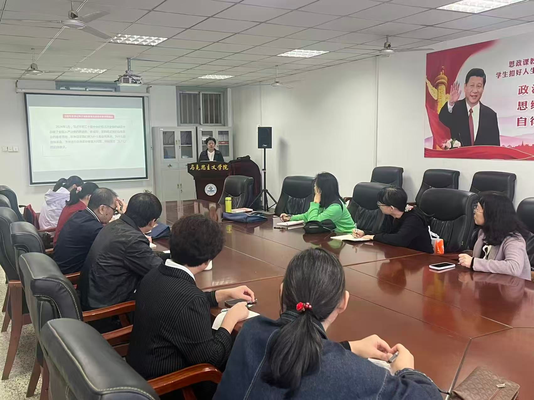 小会议室召开集体备课会。本次备课会由李芳云教授担任主讲,张弛老师主持,副院长徐文文及教研室其他教师参与研讨。 首先,李芳云老师以问题导入的方式,围绕“为什么要全面从严治党”“为什么党的十八大以来管党治党宽松软状况得到根本扭转”“如何理解全面从严治党这场伟大自我革命”三个核心问题展开专题讲解。她从多维度出发,深入剖析全面从严治党的深刻内涵与重大意义,呈现出逻辑严密、层次清晰的教学框架。