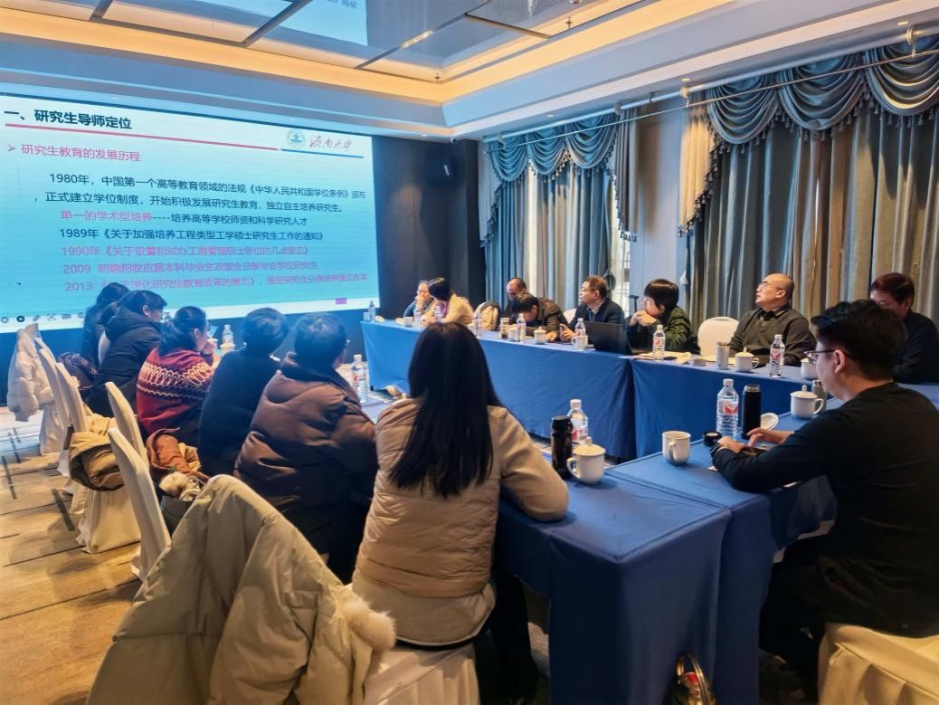 研究生院副院长仲倩围绕着研究生培养主题,从研究生导师定位、研究生导师招生资格遴选、研究生导师工作内容、评价激励机制等方面展开详细指导,为导师们提供了针对性很强的工作思路与方法。院长杨立志结合按摩无码