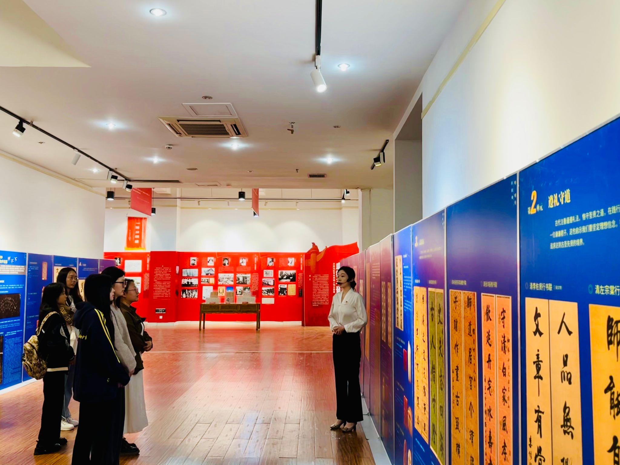 活动中,张彦楚同学带领同学们参观了舜道艺术馆的各个展区详细讲解了中华优秀传统文化中“仁、义、礼、智、信”等核心价值理念。她通过生动的故事和丰富的展品,深入浅出地阐述了传统文化与社会主义核心价值观的内在联系,让同学们深刻认识到中华优秀传统文化是社会主义核心价值观的重要源泉。